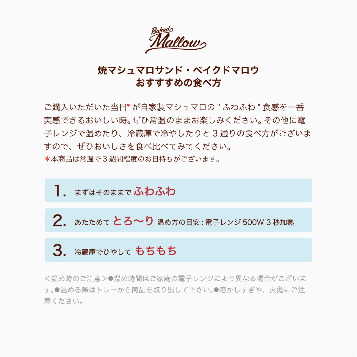 「焼マシュマロサンド・ベイクドマロウ」の3つのこだわり。