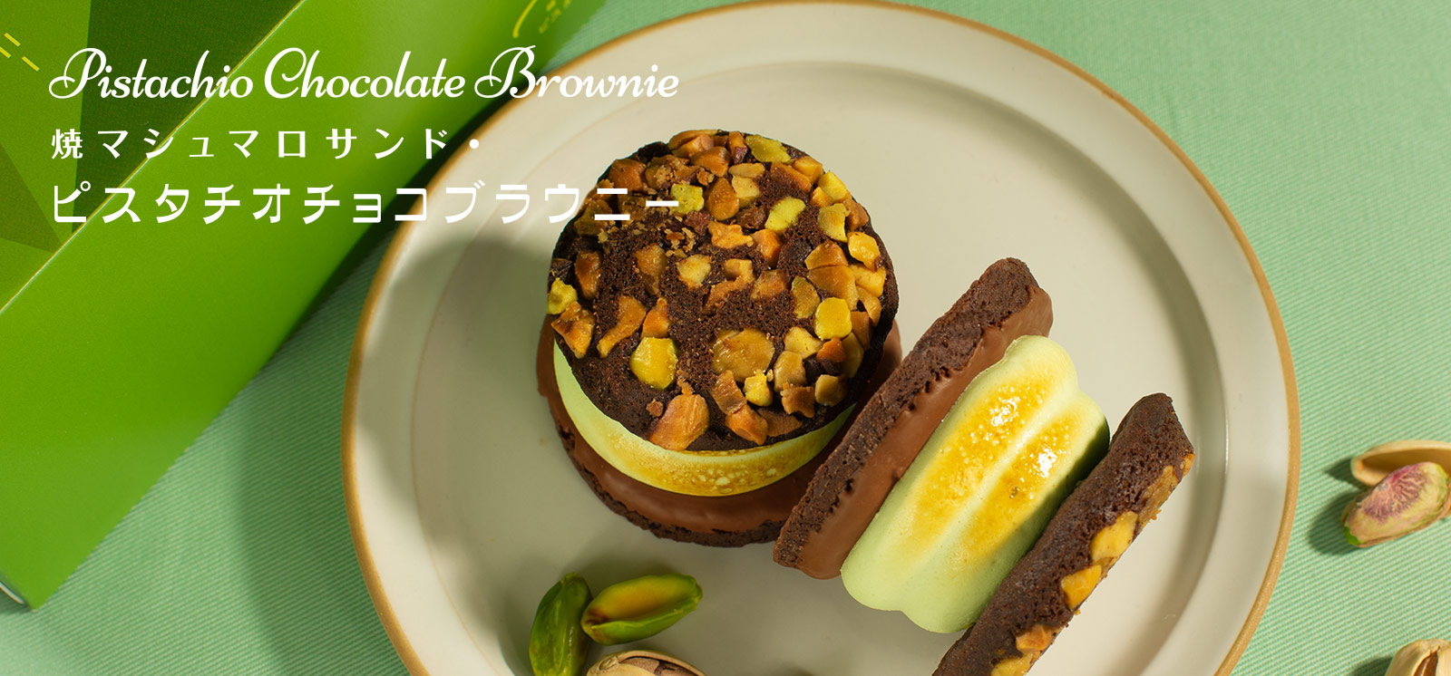 『焼マシュマロサンド・ピスタチオチョコブラウニー』が誕生!「美味しく、おしゃれで、もらった人が喜ぶサプライズスイーツ」をコンセプトに多くのファンを魅了し続ける【ベイクドマロウ】。看板商品『焼マシュマロサンド』より待望の新フレーバーが登場いたします。ピスタチオ好きを虜にすること間違いなし!