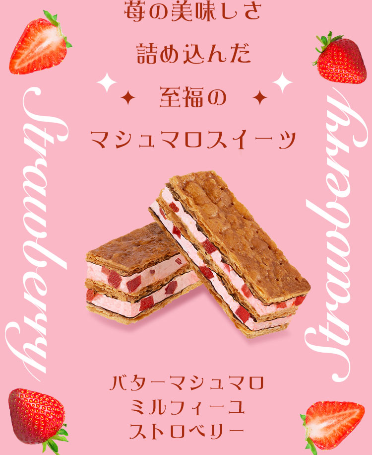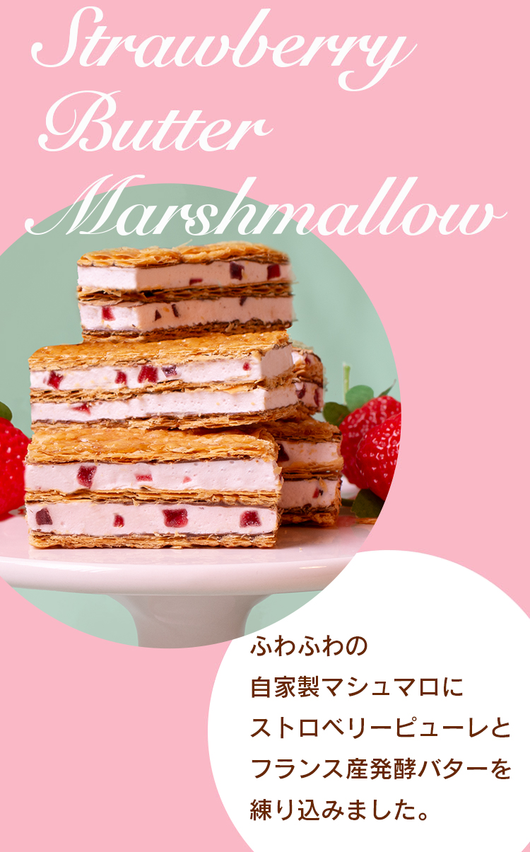 PRODUCTS 焼マシュマロサンド ベイクドマロウ ストロベリー ピスタチオチョコブラウニー キャラメルマカダミアチョコブラウニー バターマシュマロミルフィーユ バターマシュマロミルフィーユストロベリー アソートギフト